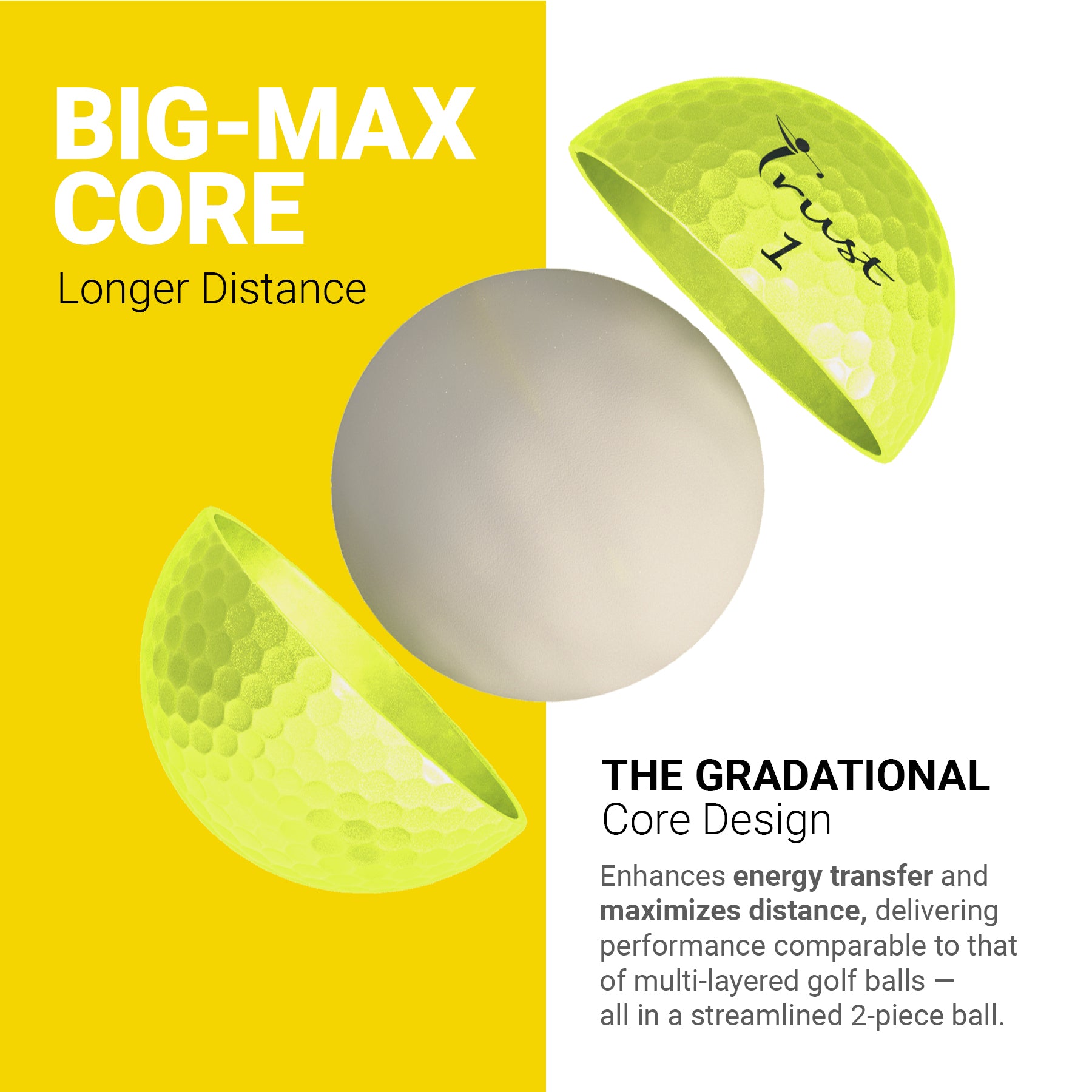 The Trust Panther features a premium soft urethane cover. The soft cover allows club grooves to grip the ball, generating high friction and greater control. If you’re looking to improve your game, Panther is perfect for those aiming to break 100: high-handicappers, seniors, and junior golfers alike!